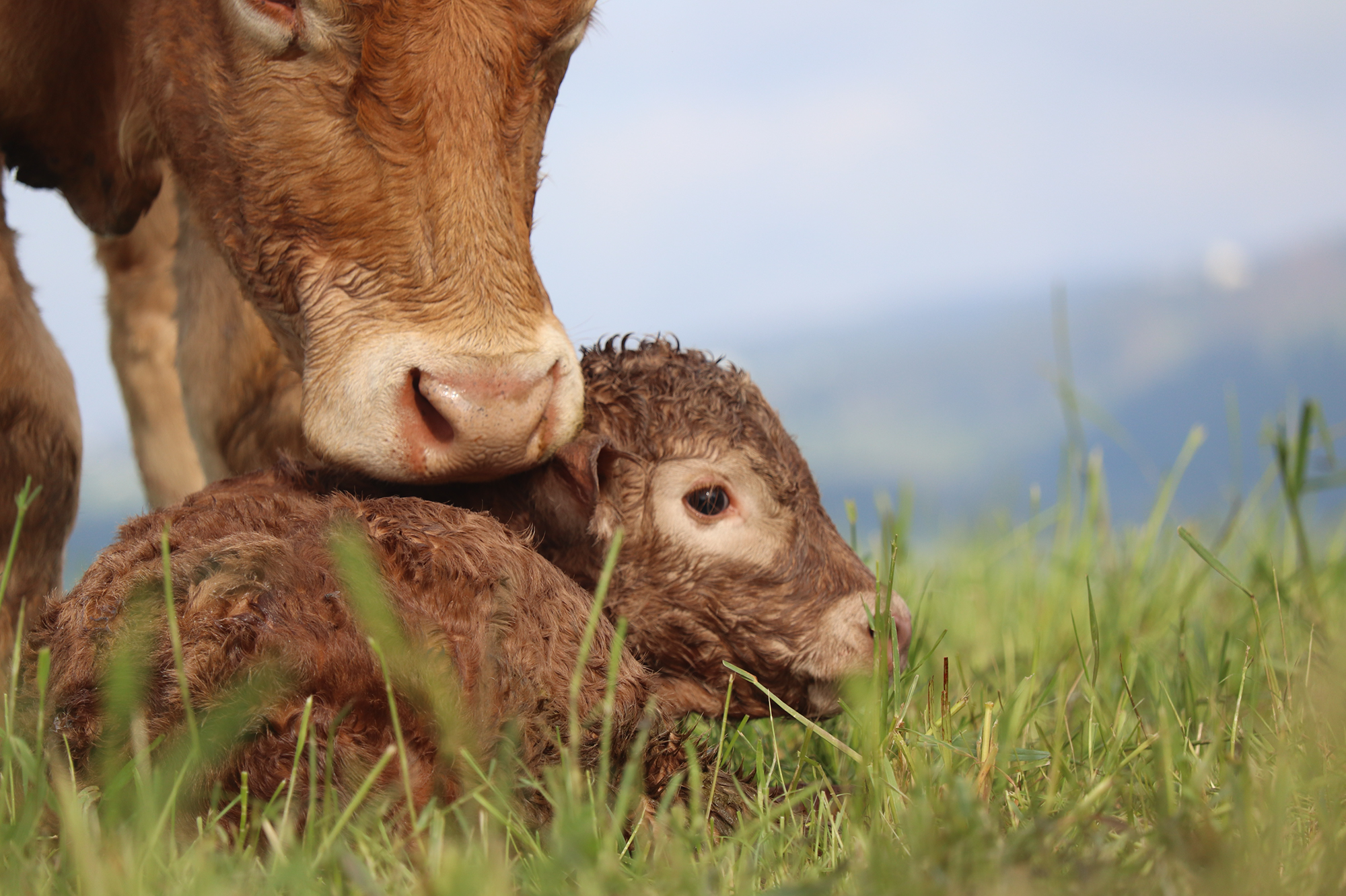 Mit unserer Mutterkuhhaltung produzieren wir als ökologisch wirtschaftender Betrieb qualitativ hochwertige Kälber zur Weitermast & Schlachtung.